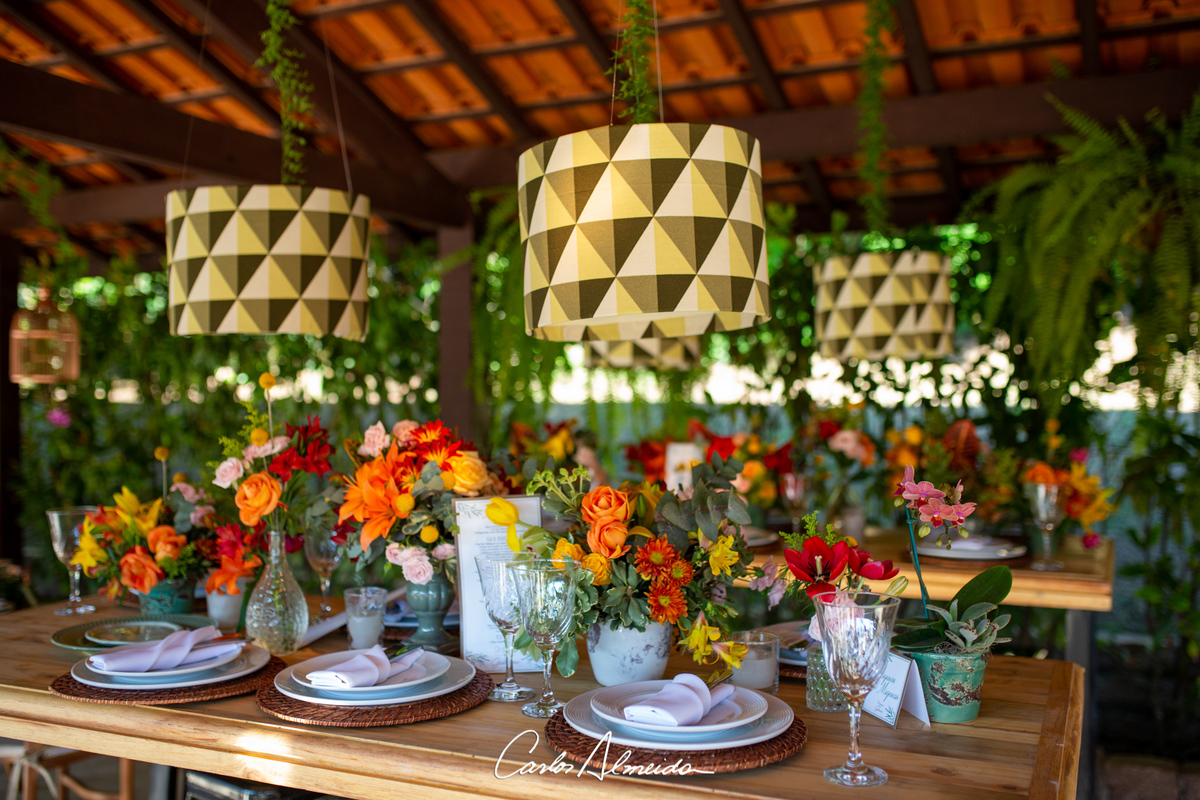 Uma decoração colorida, unido o grafismo e o rustico em uma composição única.